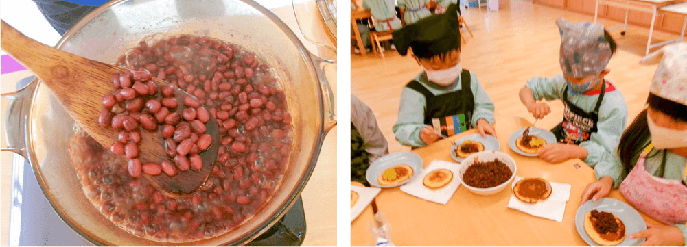 園の菜園では、野菜はもちろん、丹波の代表的な特産物である「大納言小豆」を栽培し、収穫体験も行っています。
